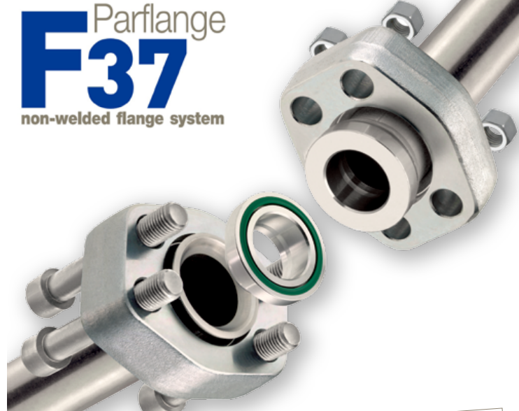 Parflflange F37法兰连接方式利用钢管成型技术来加工16-165mm(1/2"至6"法兰)外径的钢管,支持的钢管壁厚最高达9mm,工作压力最高达420bar。对于一些生产受限或不能装配扩口钢管的场合,派克还提供保持环连接形式。